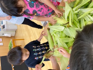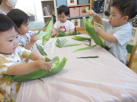 そんな、みんなの大好きなトウモロコシの皮むきをしました(*'ω'*)