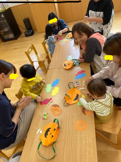 子育て広場「ひよこ」のお友達も参加してくださり、カボチャのポシェットの製作も楽しみました(。・ω・。)