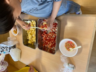 デザートは、子ども達が自分で好きなように作る手作りパフェです(*^O^*)