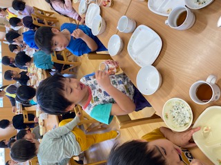 みんなで楽しい時間を過ごした後は、楽しみにしていた給食♪