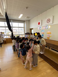もうすぐこども園を卒園する5歳児のお友達のお別れ会を行いました。