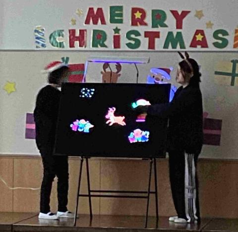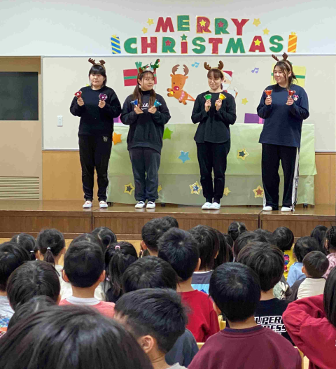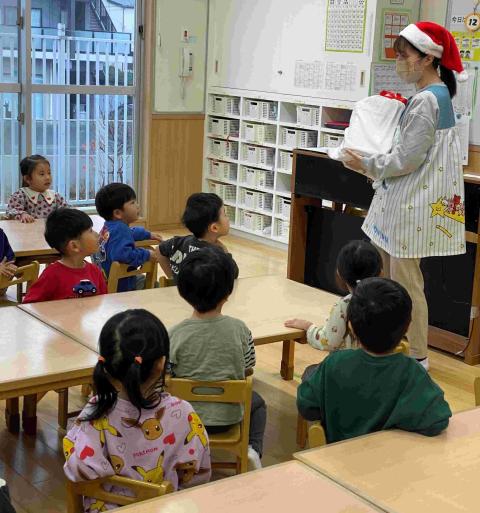先生達の出し物を見て楽しく過ごした後にサンタさんの登場!