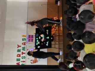 先生たちからのブラックパネルシアターのプレゼントを見たり、3.4.5歳児さんは合同でグループを作りグループで対戦するゲームを楽しみました。