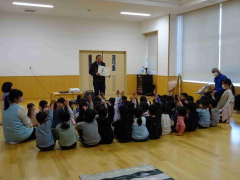 5歳児のお友達はもう少しすると小学生。小学校に行くまでには危険もあります。交通安全を意識して通学できるように、とお話をいただきました。
